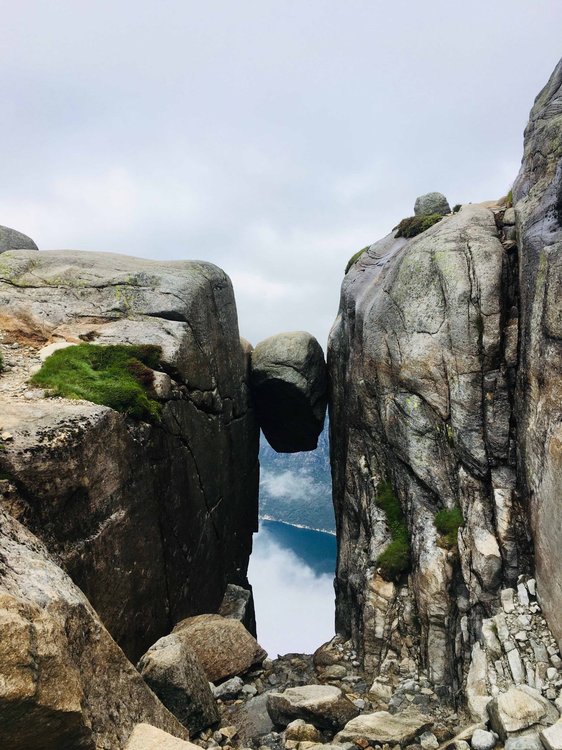 Kjeragbolten- sławny kamień uwięziony pomiędzy dwiema skałami.